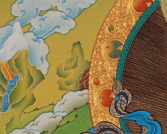 In our studio, the White Tara Female Buddha Thangk was exquisitely hand-painted utilizing acrylic colors on a cotton canvas. As a final touch and to better emphasize the deity's attributes, we also used genuine 24K gold paint. The White Tara is shown in the thangka sitting serenely on a moon disc lotus seat. The brilliant halo illuminates her face, and her presence is engulfed by the flowing robe and the priceless jewelry set with diamonds. We guarantee that the thangka painting's materials are of the most outstanding quality and will last years. For practitioners like you to chant the White Tara, this piece of art will be a perfect gift from Nepal.