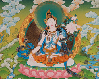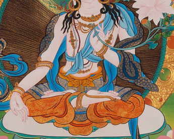 White Tara Female Buddha Thangka | Hand-Painted Art for Meditation