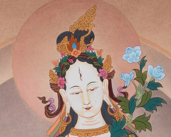White Tara Thangka | Religious Buddhist Artwork | Wall Hanging Decoration
