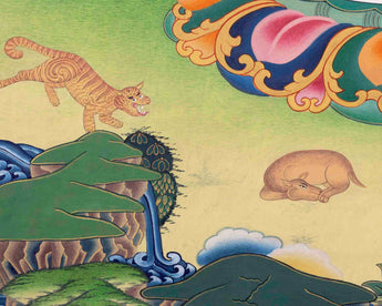 Every detail of a painting has a symbolic meaning. Regardless of your religious affiliation, a thangka can help you on your path to enlightenment, whether you practice Buddhism or have other religious convictions. Thangkas are paintings that depict deities with various iconographic elements and symbolism that encourage meditation on the teachings of the god they depict. Any thangka is intended to aid in removing the film of ignorance, which is a significant barrier to the road to enlightenment. The Thangka is revered as a holy item. They promote positivity, spread Buddhism's teachings, bring about peace, harmony, and oneness, and dispel any negative energy that may be there.