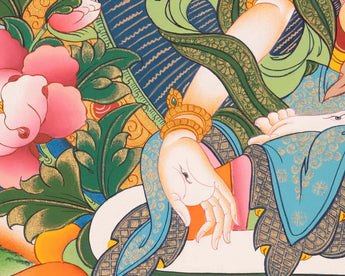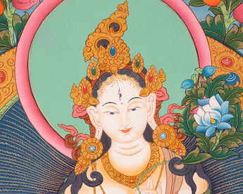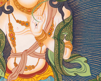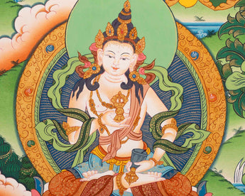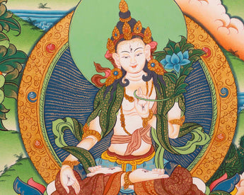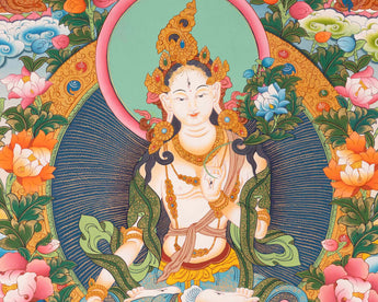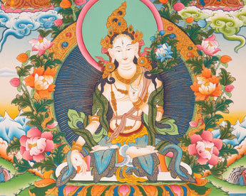 White Tara Thangka Flanked By Other Bodhisattva | Wall Decoration Painting | Art Painting for Meditation and Good Luck to house