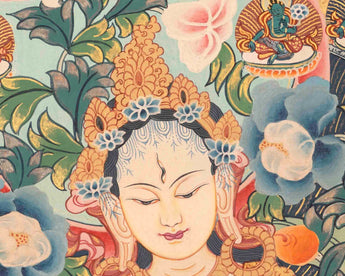 White Tara Thangka Painting | Religious Tibetan Art | Wall Decors