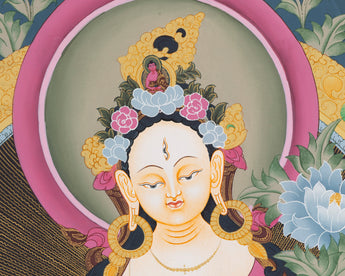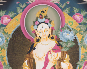 White Tara Thangka Painting | Female Bodhisattva Art | Religious Wall Art