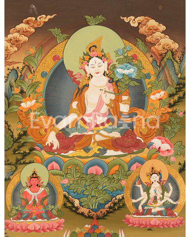 Hand-Painted White Tara Thangka