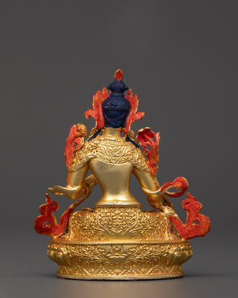 White Tara is highly regarded for her capacity to offer protection, longevity, and healing. This statue of the deity, crafted from copper and plated with gold, serves as a poignant reminder of her profound wisdom and compassion. This Tibetan healing god statue promotes peace and spiritual growth, whether you're a Buddhist devotee, a collector of handcrafted spiritual art, or simply seeking a symbol of peace for your home. To attract the benefits and uplifting energy of White Tara into your life, place it in your home shrine, yoga area, or meditation room.