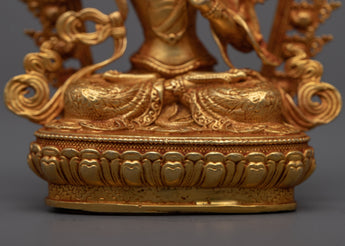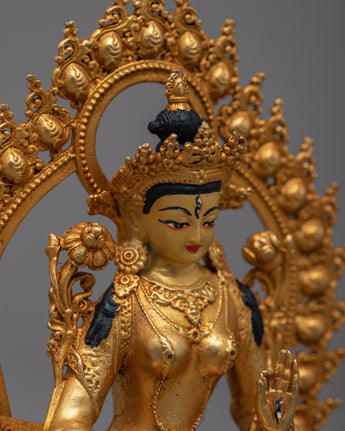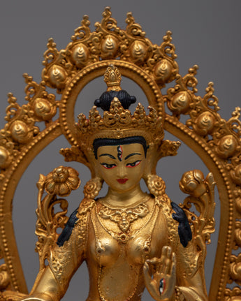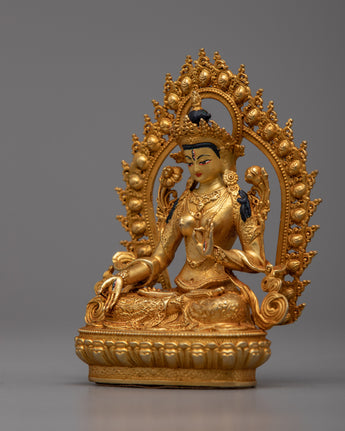 With a beautiful 24k gold plated finish, every detail of this statue is precisely created to capture White Tara's beauty and grace. Whether placed in homes, meditation areas, or holy altars, the Goddess Machine Made White Tara Statue is a powerful emblem of divine compassion and spiritual guidance, motivating followers on their path to enlightenment.