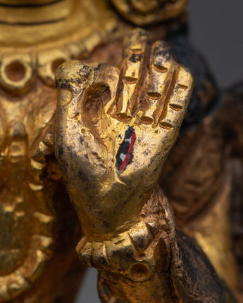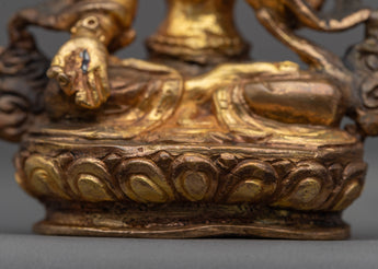 The workmanship and accuracy displayed in the copper body demonstrate the artisan's dedication to producing a work that exudes spirituality and reverence. The ornate 24k gold gilding highlights White Tara's great spiritual significance by adding yet another level of opulence. This magnificent statue, which exudes a spirit of peace, kindness, and divine blessings, is meant to be the focal point of your sacred area.