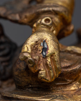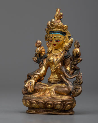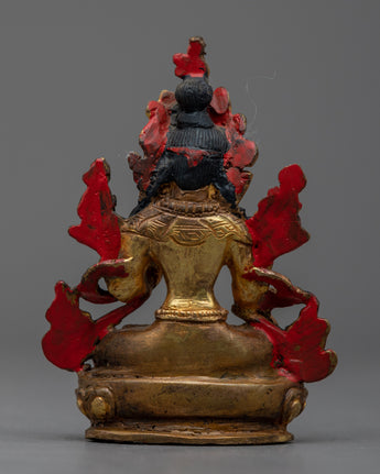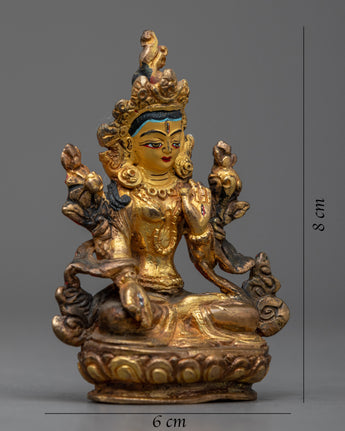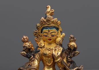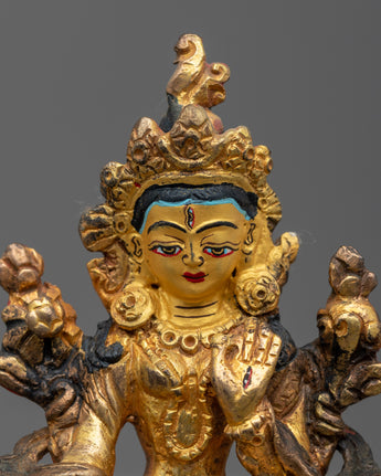 At 8 centimeters tall, the Goddess White Tara Statue is a magnificent work of art that invites you to experience the essence of spiritual renewal and compassion. Crafted with great care using a copper body and lavished with dazzling 24k gold gilding, this statue honors White Tara, a highly respected figure in the Buddhist tradition.