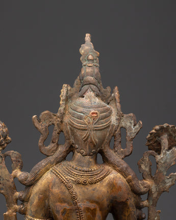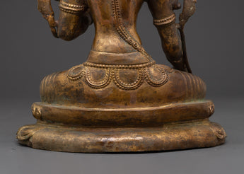 With its elaborate carvings that showcase the artistic brilliance of ancient craftsmanship, this White Tara brass sculpture is a magnificent depiction of beautiful womanhood. It is lightweight and strong, weighing only 1.14 kg, so it may be easily placed in your sacred location without sacrificing presence. The beautiful brass finish enhances the statue's bright, golden luster for daily practice or ceremonial display, adding to its aura of calm, protection, and enlightenment.