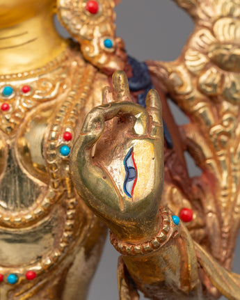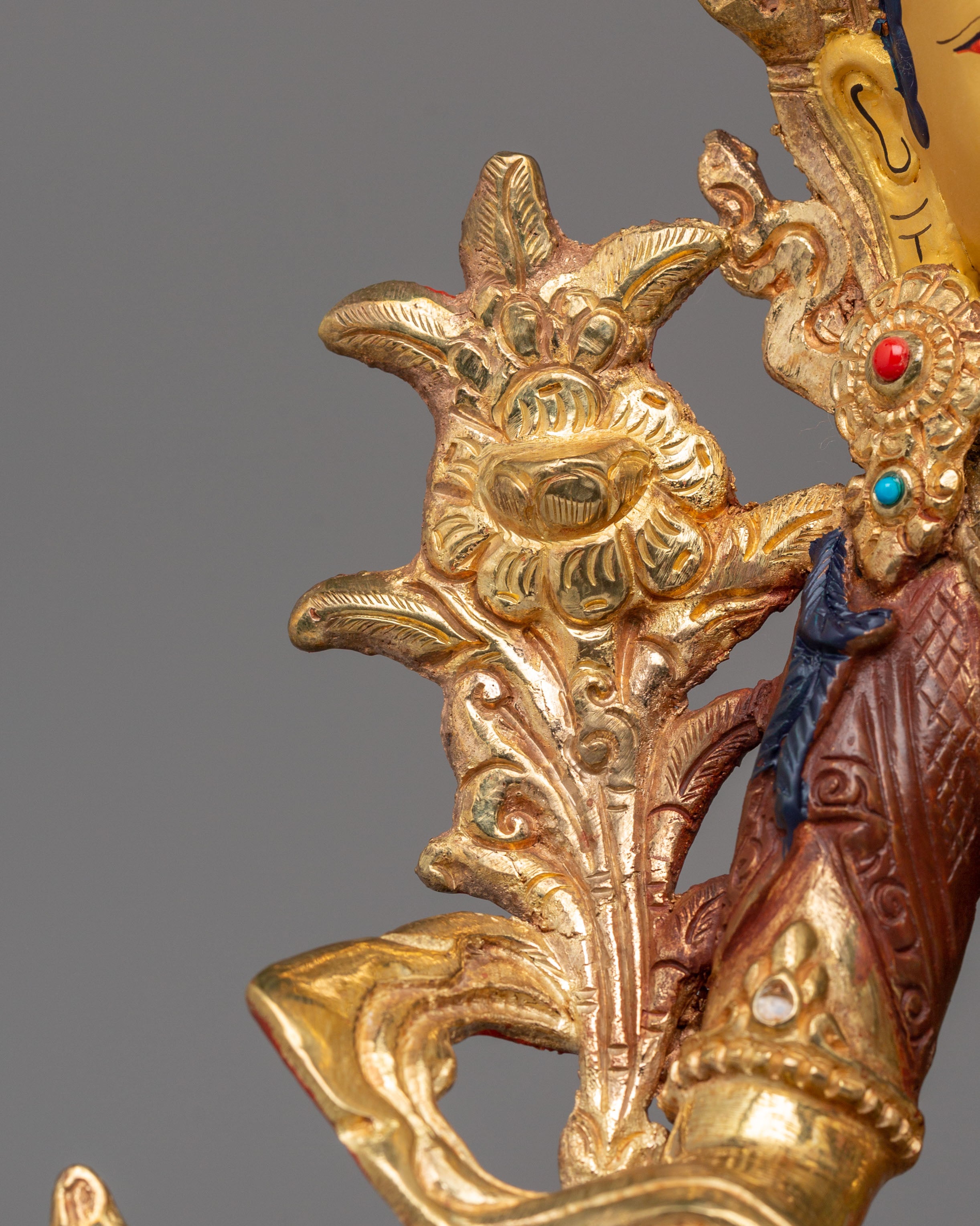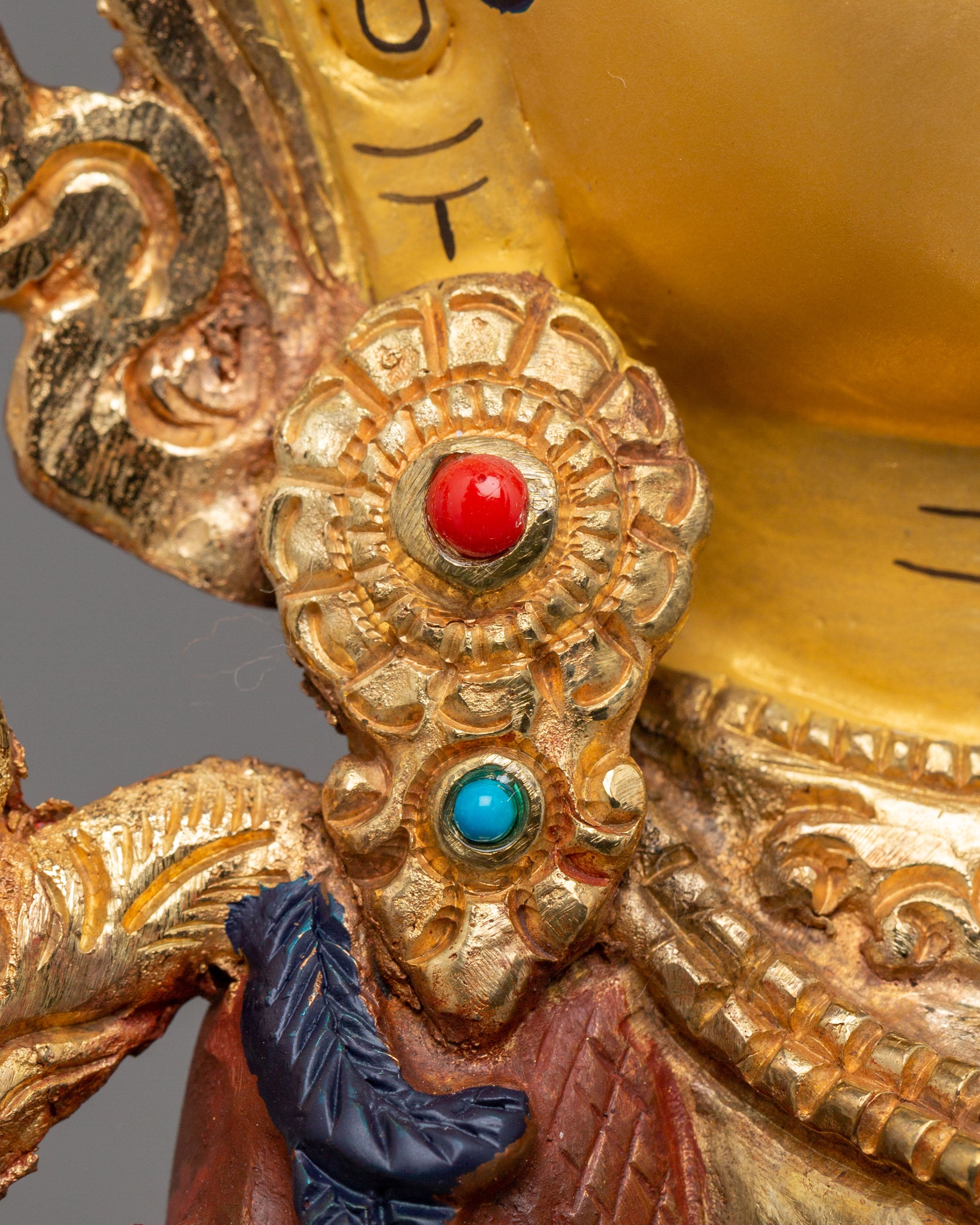 White Tara is depicted with seven eyes, which represent her caring alertness, and make her apart. Aside from the two usual eyes, she has a third eye on her forehead, one on each hand, and one on the soles of her feet. Her graceful appearance and elegant design make this statue a powerful symbol of healing, compassion, and protection, inviting longevity and good health to those who revere her.