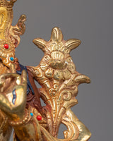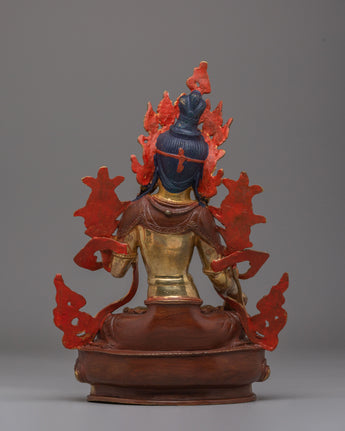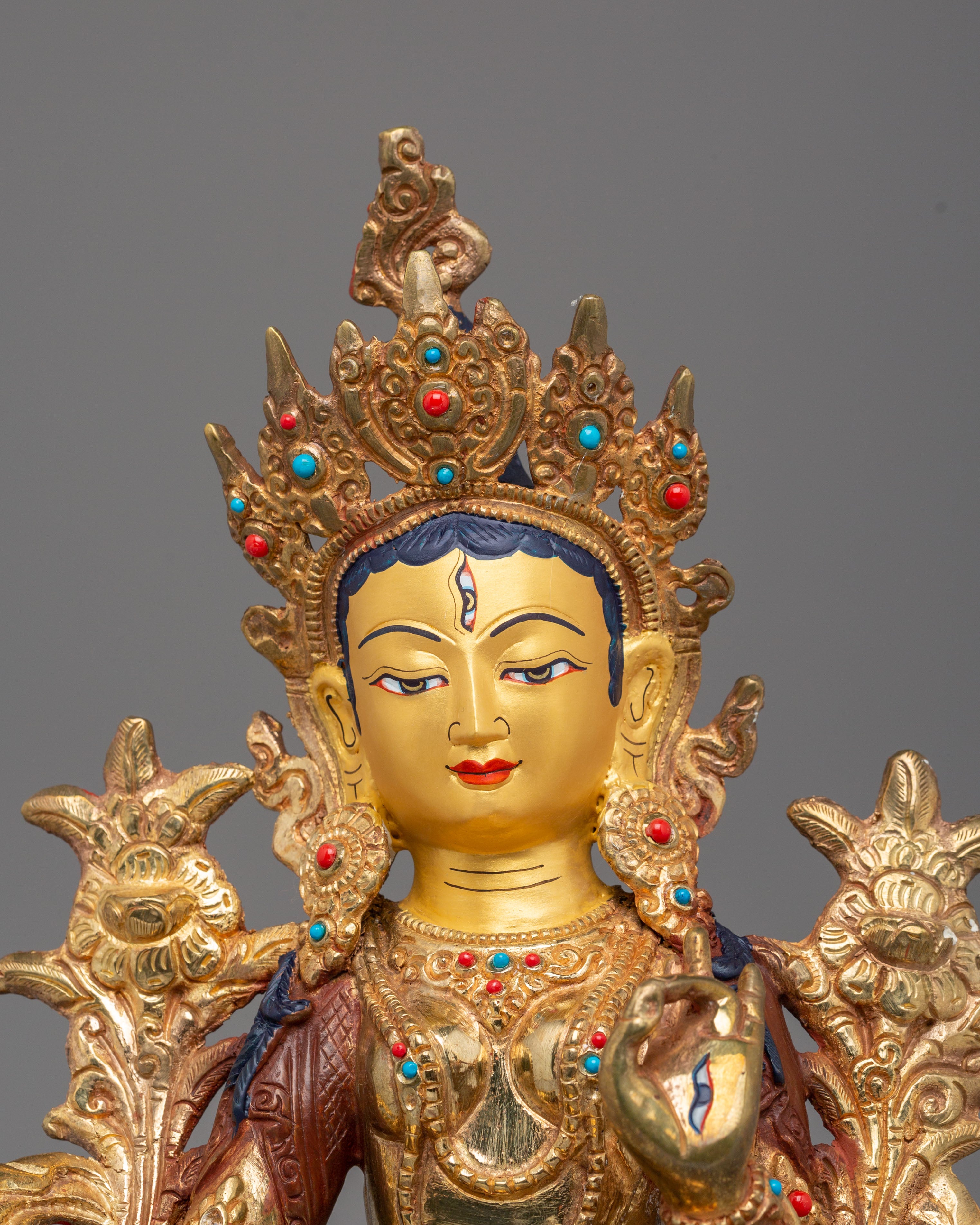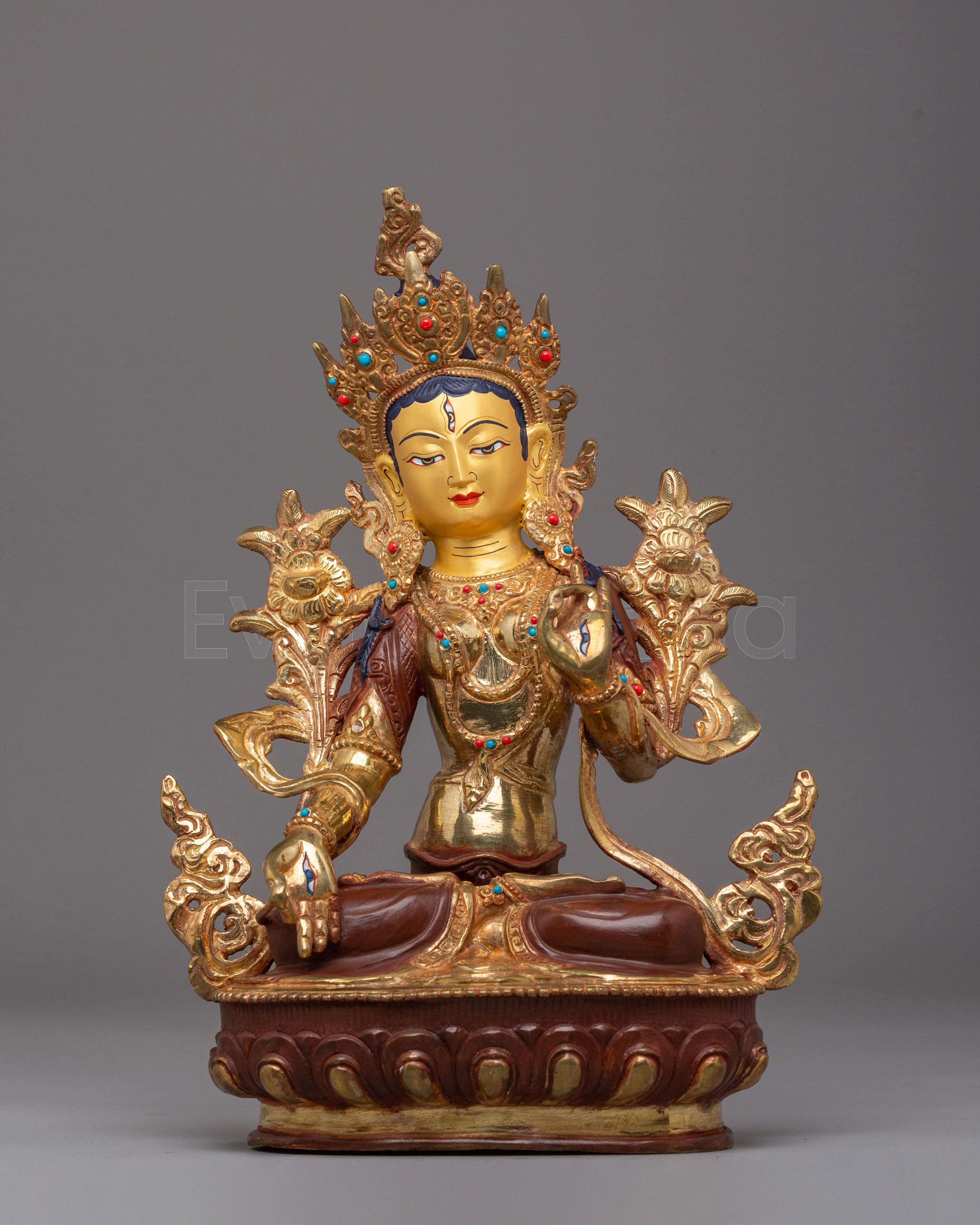 White Tara, a prominent figure in Tibetan Buddhism, is known as the goddess of compassion and longevity. She is said to have emerged from the tears of Avalokiteshvara, representing his deep compassion for the suffering of sentient beings. White Tara’s role is to bring healing, protection, and long life. Her seven eyes symbolize all-seeing wisdom, offering blessings for both physical and spiritual well-being. Her compassionate nature serves as a poignant reminder of selfless care and a genuine desire to alleviate suffering.