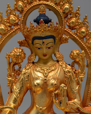 White Tara is known as the Female Buddha in the Buddhist tradition. White Tara appears in the form of a female Bodhisattva and goddess for the benefit of every living being. All the Buddhas granted her empowerment from ten directions, for which she became The GREAT MOTHER from whom all the Buddhas spring forth and one who possesses transcendental wisdom.
