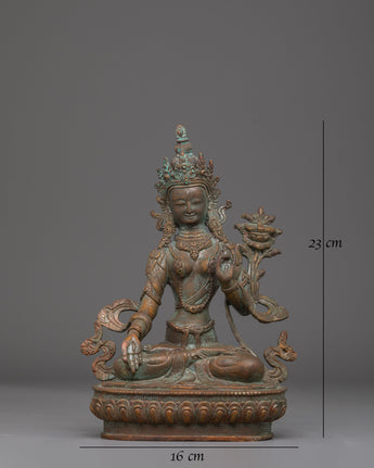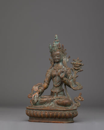 Oxidized Copper Statue of Green Tara | Enlightened Tara