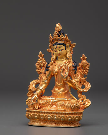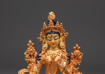 The Seven-Eyed White Tara Statue is expertly crafted with an electro-gold-plated copper body. This art piece symbolizes healing, compassion, and protection, making it a meaningful addition to your sacred space. Its intricate design, both spiritual ambiance and decor, inspires peace and mindfulness in your daily life.