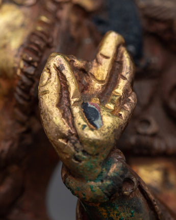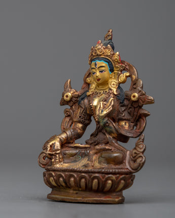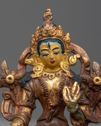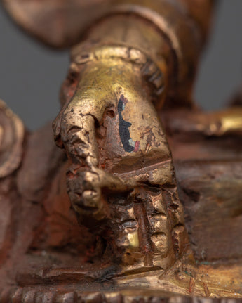 The precision and craftsmanship evident in the copper body reflect the artisan's dedication to creating a piece that exudes spirituality and devotion. The opulent 24k gold gilding adds an extra layer of opulence, emphasizing the profound significance of Sita Tara in the spiritual realm.