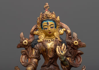 The Sita Tara Statue is a divine work of art that embodies spiritual grace and reverence. Crafted with meticulous care, this statue features a copper body adorned with resplendent 24k gold gilding, paying homage to Sita Tara, a revered figure in the Buddhist tradition.