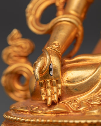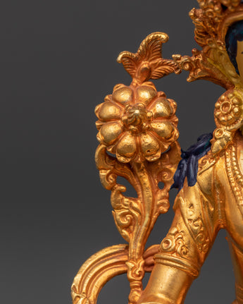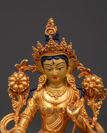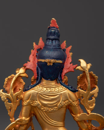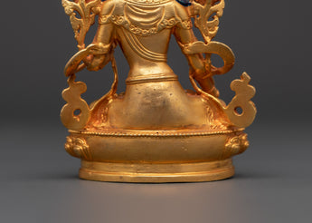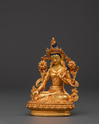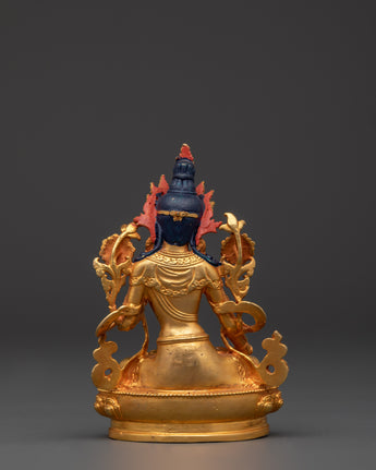 This White Tara deity statue, handcrafted with meticulous attention to detail, is not only a stunning ornamental piece but also a meaningful artifact for your spiritual activities. Whether placed on a meditation altar, utilized as Buddhist altar decor, or given as a gift to someone seeking healing and protection, this statue is a continual reminder of Tara's compassion and strength. With its gold-plated finish and delicate characteristics, this Tara sculpture adds spiritual importance and visual harmony to any setting. Add this Tara in lotus stance to your collection and enjoy the peaceful presence of the goddess Tara in your house.