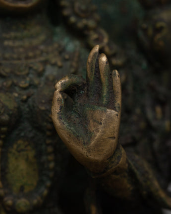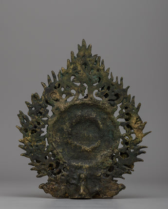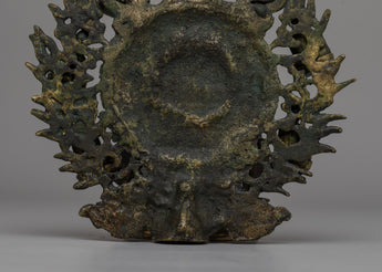 The spiritual importance of this statue is firmly ingrained in Tibetan Buddhist doctrine. White Tara is adored as a bodhisattva who bestows healing and longevity to all beings, particularly those in need of comfort and protection. The fire-shaped halo around her symbolizes the transformational power of wisdom and compassion, which burns away obstacles and suffering. This statue reminds us of the interconnectedness of all beings and the need of nurturing compassion, healing, and understanding in our lives.