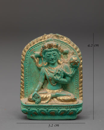White Tara is greatly venerated in Tibetan Buddhism as a symbol of mother compassion and healing energy. The soothing turquoise color represents purity, tranquility, and spiritual harmony, making it an excellent choice for your altar, meditation place, or holy collection. Despite its small size, the sculpture catches intricate details and conveys profound spiritual meaning.