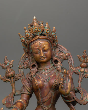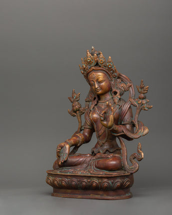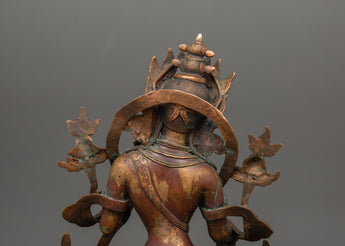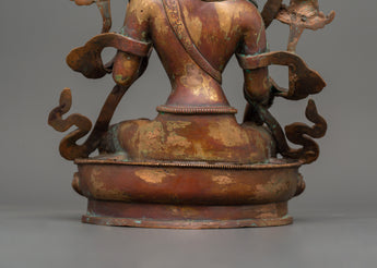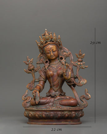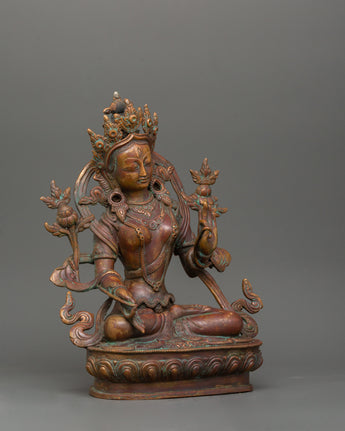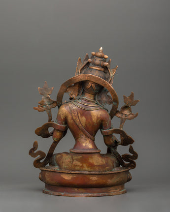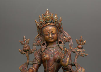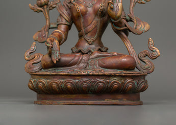 This 3.38kg oxidized copper White Tara statue is masterfully created by expert artisans, resulting in detailed detail and a strong spiritual presence. The rusted finish gives it an old, timeless look ideal for traditional and contemporary spiritual settings. White Tara is said to bestow healing energy, protection, and long life on those who meditate on her. Whether displayed in a shrine, altar, or sacred location, this statue is a profound reminder of inner serenity and heavenly grace.