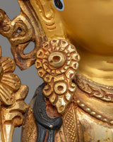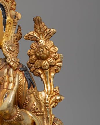 The White Tara Handcrafted Copper Statue is a stunning representation of White Tara, the Tibetan Buddhist deity of compassion, healing, and longevity. Standing at 32.5 cm in height and 23 cm in width, and weighing 3.28 kg, this statue is crafted from a high-quality copper body with exquisite 24K gold gilding and vibrant acrylic colors. White Tara is revered for her ability to bring peace, health, and spiritual protection, making this statue a powerful addition to your altar, meditation space, or spiritual collection.