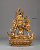 Handcrafted White Tara Copper Statue with 24K Gold Gilding