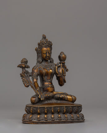 Handmade White Tara Goddess Statue | Copper Sculpture For Spiritual Home Decor