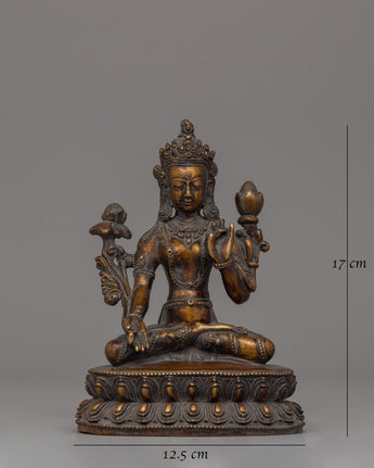 This magnificent item, which measures 17 cm in height and 12.5 cm in breadth and weighs 0.89 kg, flawlessly combines history with elegance. Let White Tara's spiritual essence inspire peace and grace in everyday rituals. Elevate your house or give this breathtaking statue to someone special who values spiritual beauty.