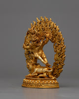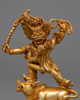 The Yamantaka Copper Statue features a copper body adorned with radiant 24k gold plating, combining modern craftsmanship with spiritual significance. It represents Yamantaka's ability to overcome obstacles and death.