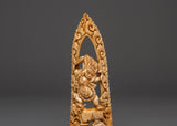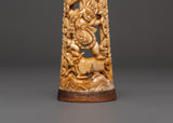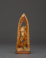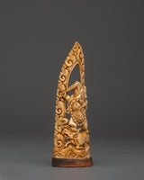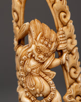 This Yamantaka bone statue is full of symbolism: His ferocious visage and dynamic posture represent the ability to defeat death and negative forces. The flames around the figure indicate transforming force, while the buffalo beneath depicts defeating ignorance and samsara. This statue’s delicate carving draws attention to these potent spiritual aspects, encouraging devotion and protection.