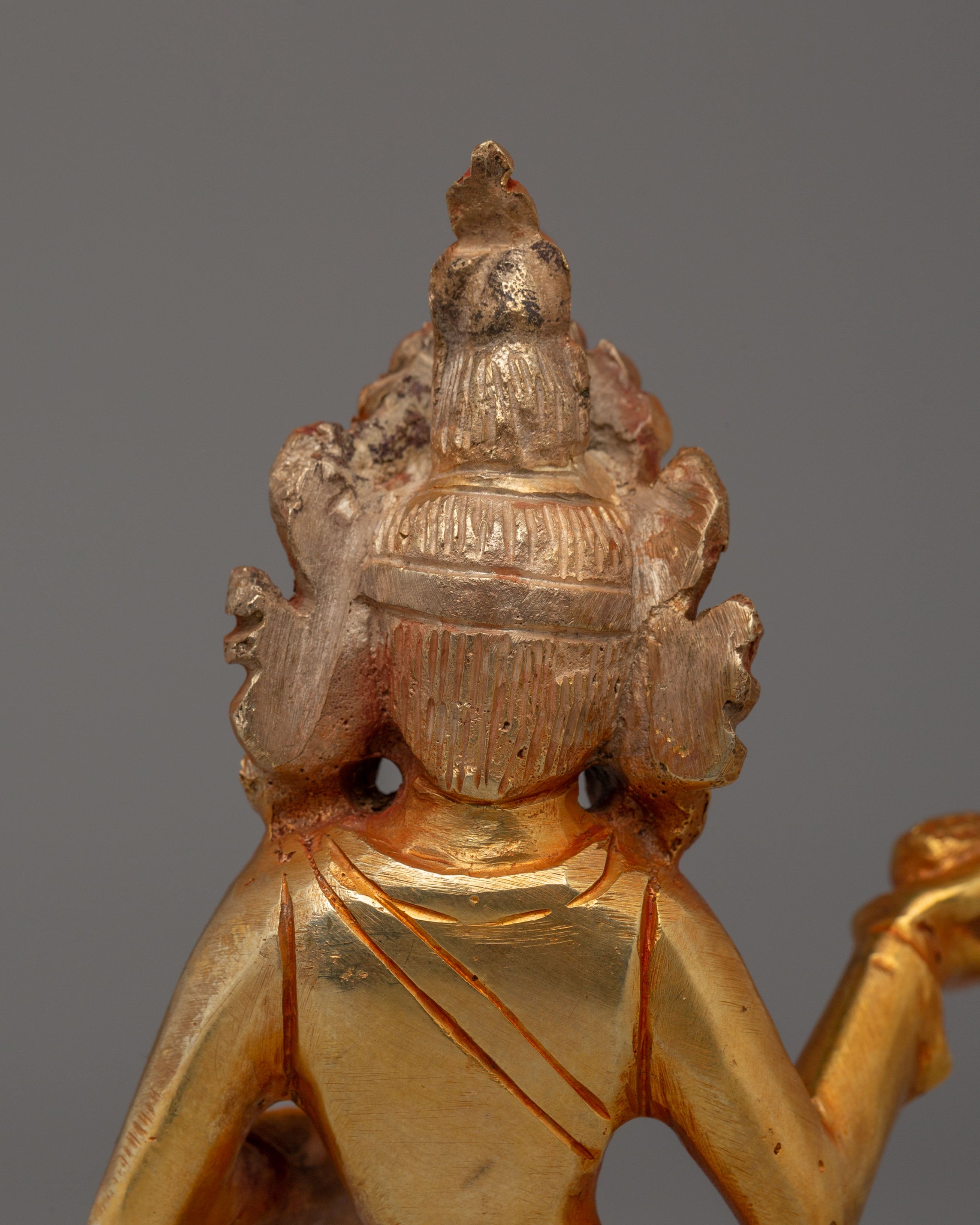 The Tibetan Yeshe Tsogyal Statue is a sacred representation of Yeshe Tsogyal, one of the most revered female masters in Tibetan Buddhism and a symbol of wisdom, devotion, and spiritual accomplishment. Measuring 15.5 cm in height and 7 cm in width, and weighing 0.46 kg, this beautifully crafted sculpture features a copper body enhanced with elegant electro gold plating. The refined detailing and graceful form reflect traditional Himalayan artistry, making this statue a meaningful addition to personal altars, meditation spaces, and spiritual collections.