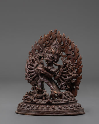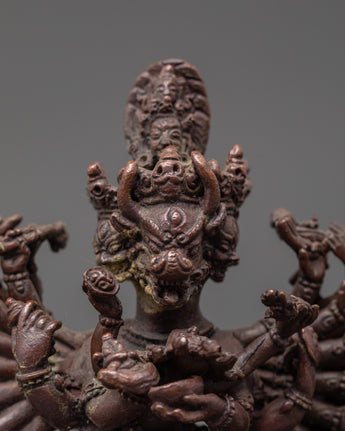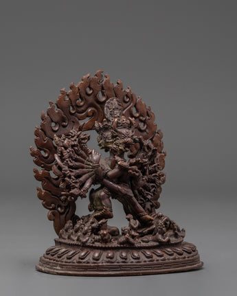 Oxidized Copper Yamantaka wth Consort Statue | Symbol of Fearlessness and Wisdom