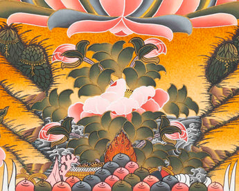 It goes without saying that every detail of a painting has a symbolic meaning. Regardless of your religious affiliation, a thangka can help you on your path to enlightenment, whether you practice Buddhism or have other religious convictions. Thangkas are paintings that depict deities with various iconographic elements and symbolism that encourage meditation on the teachings of the god they depict. Any thangka is intended to aid in the removal of the film of ignorance, which is a significant barrier to the road to enlightenment. The Thangka is revered as a holy item. They promote positivity, spread Buddhism's teachings, bring about peace, harmony, and oneness, and dispel any negative energy that may be there.