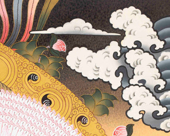 -Rotate thangkas between display and storage on a regular basis, two to four times a year, to reduce the amount of exposure to light. Keep away from sunlight and humidity.