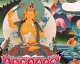 One of the most well-known Bodhisattvas in Vajrayana is Chenrezig, also known as Avalokitesvara. Chenrezig is a Tibetan term that signifies seeing with compassionate eyes. To cultivate a tranquil, loving, and compassionate heart, visual meditation exercises are performed using an Avalokitesvara Thangka.