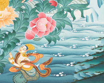 It goes without saying that every detail of a painting has a symbolic meaning. Regardless of your religious affiliation, a thangka can help you on your path to enlightenment, whether you practice Buddhism or have other religious convictions. Thangkas are paintings that depict deities with various iconographic elements and symbolism that encourage meditation on the teachings of the god they depict. Any thangka is intended to aid in the removal of the film of ignorance, which is a significant barrier to the road to enlightenment. The Thangka is revered as a holy item. They promote positivity, spread Buddhism's teachings, bring about peace, harmony, and oneness, and dispel any negative energy that may be there.