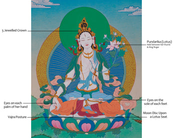 12 Inches White Tara Thangka | Seven-Eyed Goddess of Longevity