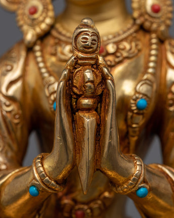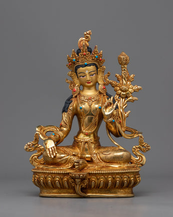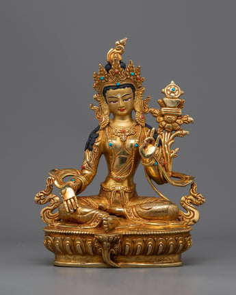 The Tara set transforms any place into a sacred sanctuary with the splendor of 24k gold gilding and fascinating acrylic paintings. Each statue is a work of art in its own right, evoking a sense of tranquility and spiritual enlightenment in all who gaze upon it.