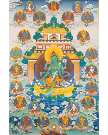 Note:The 21 Tara Thangka is an original painting from Enlightenment Studio,located at Boudha Stupa.