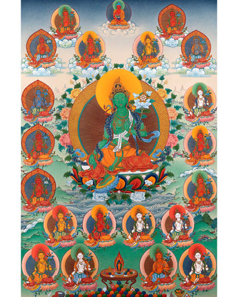 21 Taras Mandala of the Chandragomin Tradition | Twenty-One Tara Thangka Painting