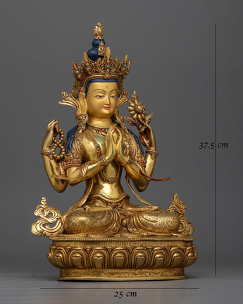 24K Gold Gilded Chenrezig Statue | Embodiment of Compassion and Serenity
