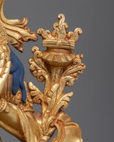 Handcrafted 24K Gold Gilded Manjushri Statue in Oxidized Copper
