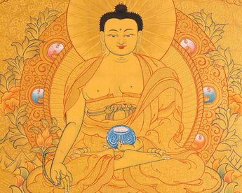 Amitayus Buddha, revered as the Buddha of Infinite Life, holds a significant place in Mahayana and Vajrayana Buddhism, particularly in Tibetan tradition. Portrayed with serene compassion, Amitayus is depicted in a meditative posture, often holding a vessel containing the elixir of immortality. Devotees chant his mantra and perform rituals to invoke blessings for longevity, health, and spiritual prosperity. Associated with Amitabha Buddha and revered alongside White Tara and Ushnishavijaya as one of the three long-life deities, Amitayus symbolizes the aspiration for a fulfilling life and guides practitioners on the path to enlightenment and liberation.