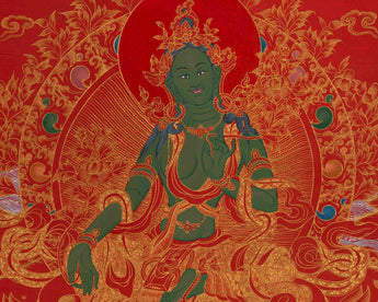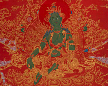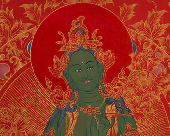 24K Gold Green Tara Thangka | Traditional Tibetan Painting | Wall Decors