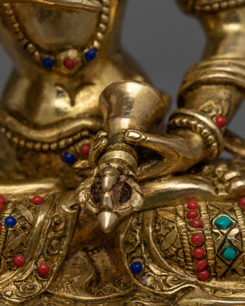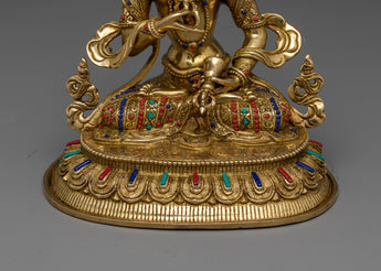 The statue of Vajrasattva represents enlightenment and knowledge. It shows the figure in a meditative pose, holding a bell in one hand and a vajra (thunderbolt) in the other. This statue is not only a stunning work of art but also a center for meditation and spiritual rejuvenation because of the fine details of his elaborate jewelry and robes, which perfectly capture the painstaking attention to detail that went into their construction.