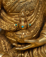 Introducing the 2nd Buddha Guru Rinpoche Statue, a stunning tribute to Padmasambhava, the legendary tantric saint who brought Buddhism to Tibet. Standing 9.4 inches tall and weighing 1.79 kg, this magnificent statue is made of copper, embellished with 24K gold plating, and emphasized with meticulous gold and acrylic paints representing Guru Rinpoche's spiritual splendor and historical significance.
