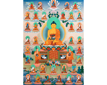 35 Buddhas of Confession thangka appears in the Nagarjuna tradition. All the iconography details, emblems, colors, and attributes were painted as mentioned in the text. For any practitioner who is looking for 35 Buddhas thangka, this thangka painting will be perfect for your practice.