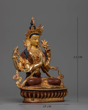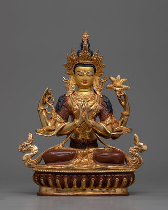 Intricate 4-Armed Chenrezig Statue with 24K Gold Gilding and Vibrant Details