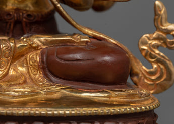 Chenrezig, also known as Avalokiteshvara, is the embodiment of infinite compassion in Mahayana Buddhism. With his four arms symbolizing the four immeasurable qualities of love, compassion, joy, and equanimity, Chenrezig is revered for his boundless mercy and the promise of aiding all beings in achieving enlightenment.
