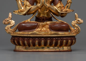 4-Armed Bodhisattva Chenrezig Statue | Gold Gilded Copper Art from Nepal
